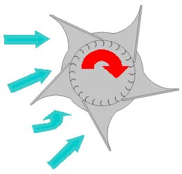 Wind power generator, Cross-flow-style windmill with Guide-vanes: